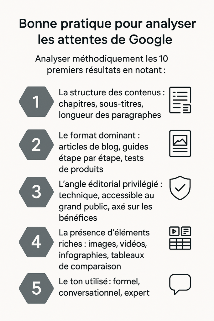 - Les formats privilégiés (listes, guides pas à pas, comparatifs)